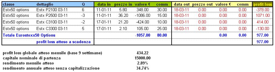 Ho adottato la base 9 settimane per il computo del profit atteso medio mensile perchè mancano effettivamente 2 mesi e una settimana alla scadenza rispetto alla prima operazione aperta.