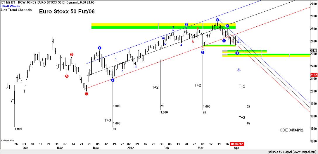 La rottura di 2356 minimo di onda quattro, punto di partenza del ciclo mensile in formazione ha formalizzato l'inversione del trend primario. Il ciclo trimestrale e semestrale partiti a fine settembre hanno girato al ribasso, lo swing chart mensile dopo sette mesi di rialzo ha invertito la tendenza con la rottura del minimo di marzo. La rottura alimenterà la continuazione del ribasso fino a 2300/2250 potenziale target per la fine del ciclo trimestrale, ma renderà improbabile sulla prossima ripartenza un ripristino del trend primario sopra 2550. L'idea per il proseguo potrebbe essere di un grande a-b-c, una fase laterale ribassista che dovrebbe arrivare alla conclusione a giugno/luglio.