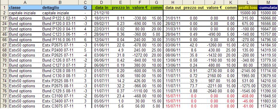Segue immagine del portafoglio aggiornato a ieri con la chiusura delle posizioni put su eurostoxx e call sul bund:
