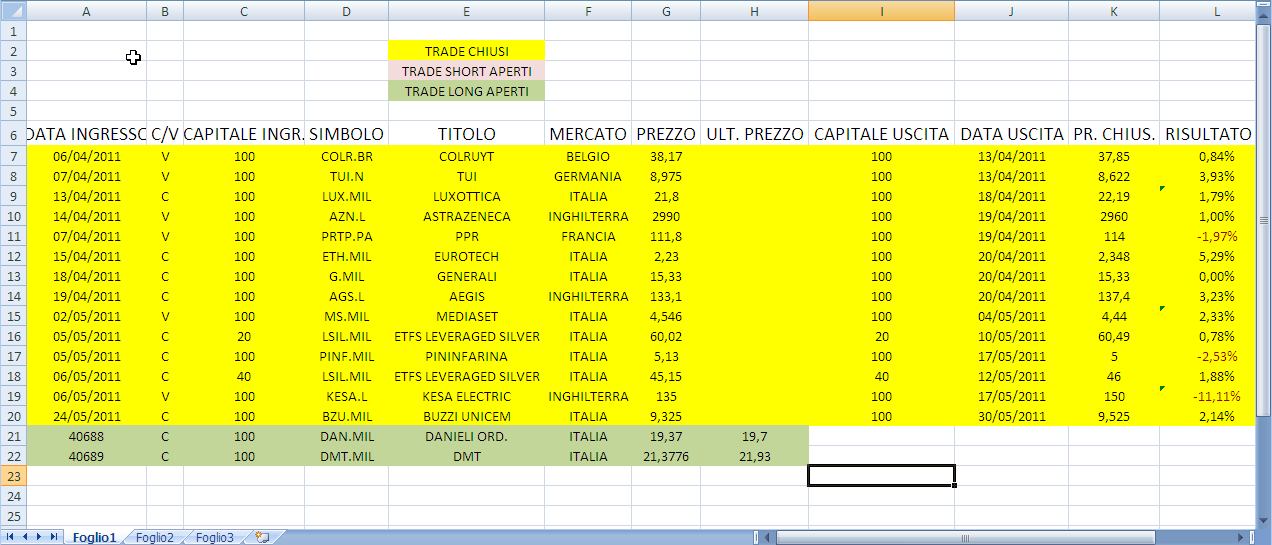 Uscito da Buzzi Unicem (long da 9,325) in open a 9,525.