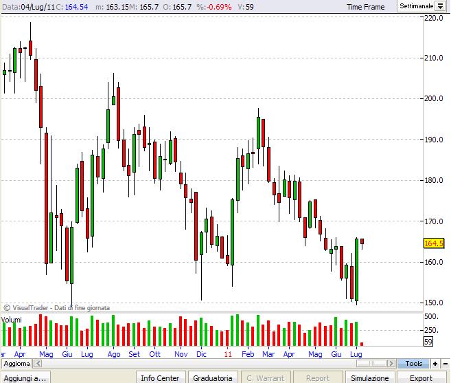 Questo è il grafico settimanale dell'indice in oggetto (fonte: Visual Trader):