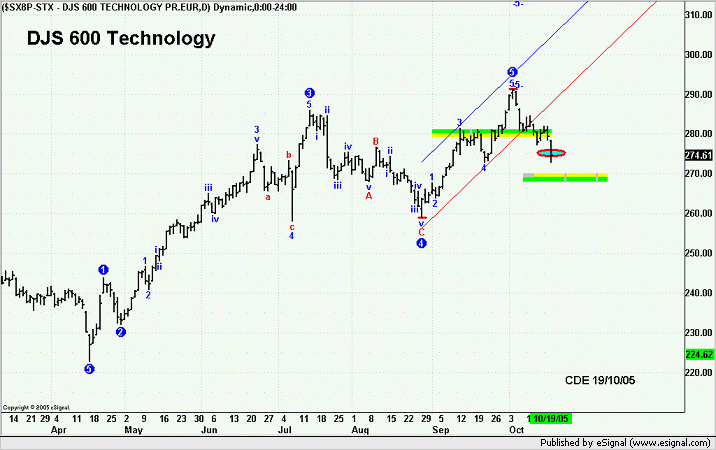 Chiudiamo con il tecnologico. Su questo settore siamo usciti in stop qualche giorno fa con una lieve perdita dopo la rottura del canale e della MOB a 279. Sembrava un errore ma dopo tre giorni di pullback è arrivato il ribasso.