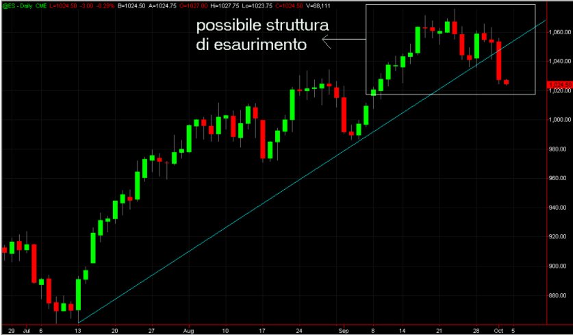 Fig.3: S&P500 futures in sessione Globex, compressione daily, che evidenzia una possibile struttura di esaurimento del trend Toro partito a metà luglio.