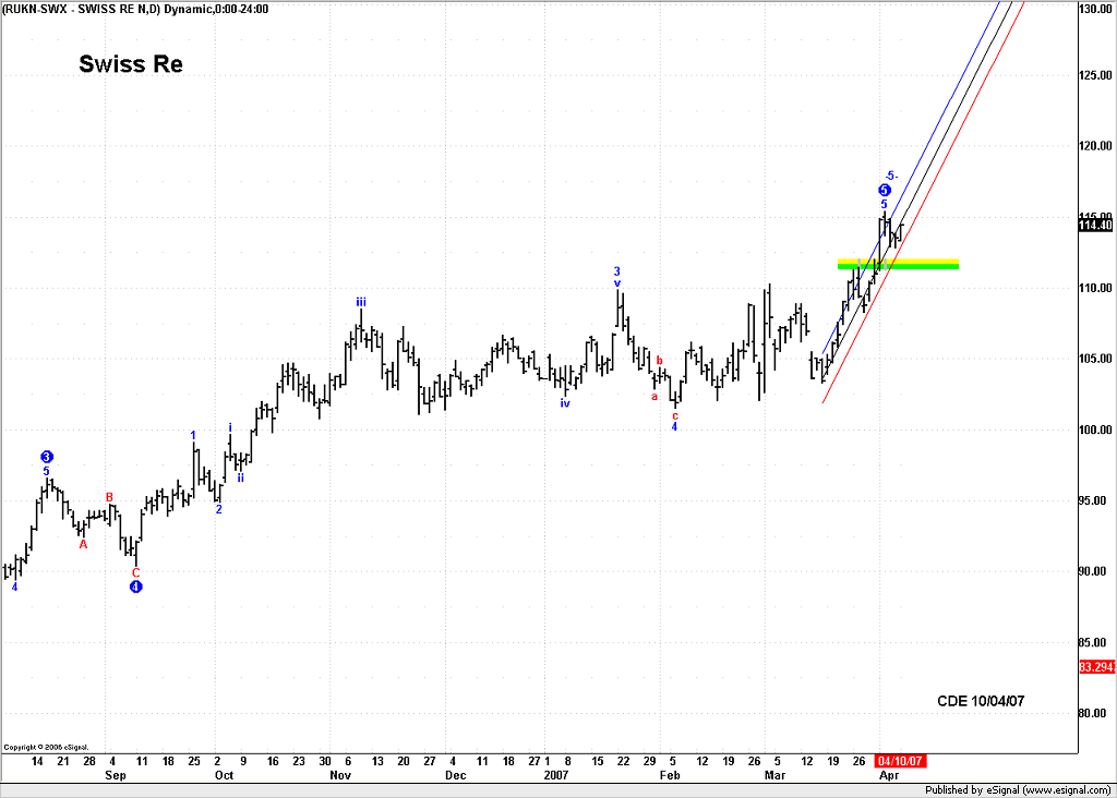 Swisse Re settore assicurativo quotato a ZurigoAcquistata mezza posizione, 5% del portafoglio a 115.00 Stop < 111.