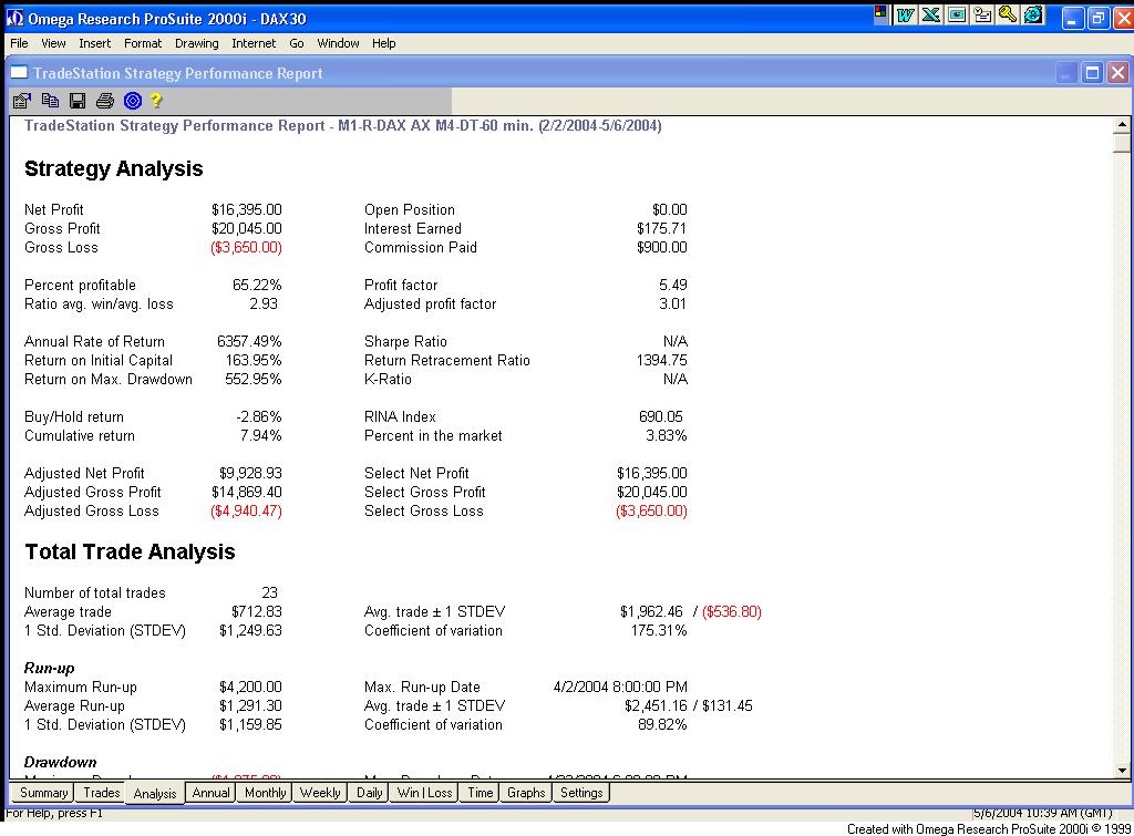L'intenzione era quella di volere evitare sospetti di aver presentato sistemi iperottimizzati o dai test "gonfiati", ma poichè in ogni modo non è possibile scampare a qualche sospetto da parte dei più maliziosi, carico per ora come gif, ma in seguito nelle dispense, i risultati direttamente dal pc che sta' generando i segnali. Si tenga in ogni caso conto che il periodo sarebbe troppo breve per giudicare un sistema (nel bene e nel male) se non fossero stati mostrati anche i risultati degli anni precedenti.