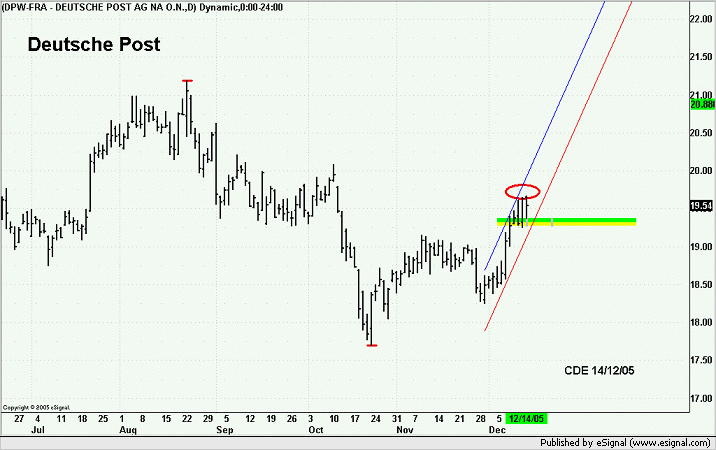 Settore Industriale quotato a Francoforte. Siamo entrati meglio del previsto, l'immediata lettera dopo l'epertuta ci ha consentito di comprare a 19.55. Stop < 19.25 daily close