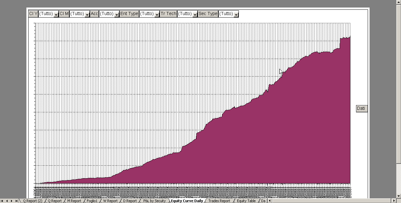 Anche dopo 6 anni di trading a tempo pieno i dubbi, le paure le incertezze sono sempre tantissimi! Certezze solo una: un'equity-line che continua a salire rendendomi quindi felice ed entusiasta della scelta effettuata nell'ormai lontano 2001 di cedere l'azienda per dedicarmi al trading a tempo pieno e gestire in prima persona il mio capitale.