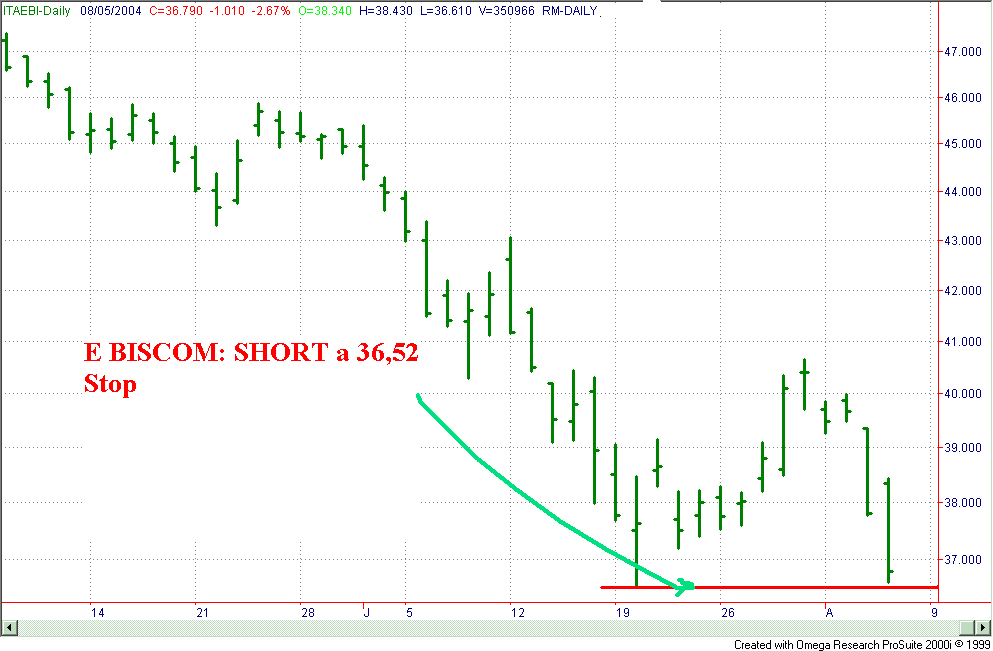 Ieri ho commesso due errori nel mio trading. Del primo ho già scritto non incrementando la posizione short di E Biscom alla rottura del minimo di giornata (stavo seguendo gli ordini di Phantom di cui avevo allegato la mascherina mercoledì). Il secondo è stato non rientrare short su Tiscali a 2,63 dopo la prima sospensione al ribasso. Il sistema che seguo su Tiscali è un daily ma l'occasione di shortare di nuovo su quel rimbalzo post sospensione era ghiotta. Ho avuto un attimo di esitazione (tipica di chi è abituato a seguire sistemi meccanici) ed è fuggita via. Chiaro che parlo di errore perchè col senno di poi l'operazione sarebbe stata molto profittevole ma a mente lucida forse di errore non si tratta al 100%. Quando si sceglie di seguire una strategia come ben sapete occorre disciplina, altrimenti per un evento favorevole ce ne sono 2 sfavorevoli e le decisoni prese in base all'emotività ed al sentiment del momento alla lunga si pagano.