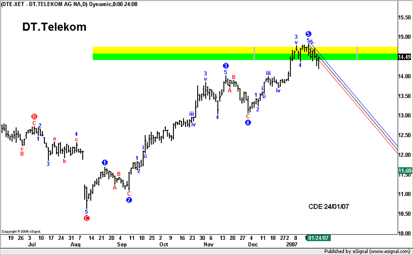 D.Telekom settore comunicazioni quotato a FrancoforteAcquistare mezza posizione, 5% del portafoglio dopo una chiusura oraria > 14,60 Stop < 14.18