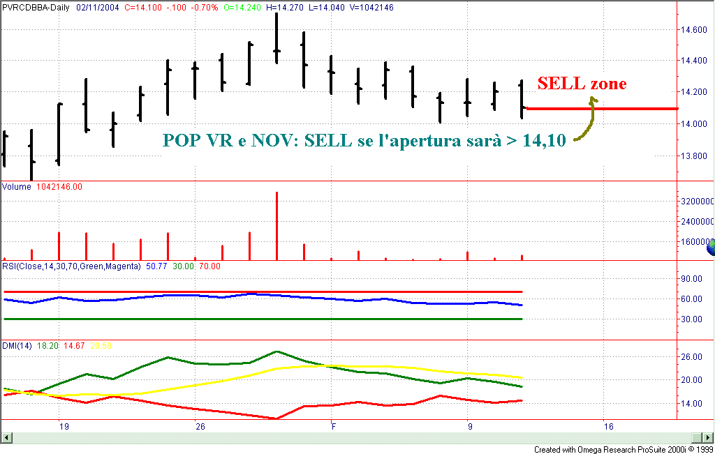 POP VERONA-If Open > 14.10 Then Sell Stop loss: 17 tickLow CapitalSTM – If Open > 21,33 Then Sell 22 tickLow CapitalALLEANZA -If Open > 9,30 Then Sell Stop loss: 8 tickLow CapitalFINMECCANICA-If Open >= 0.724 Then Sell Else If Open < 0.694 Then Buy13 tickLow Capital