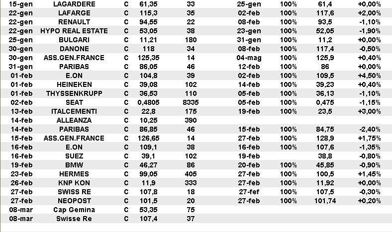 Le operazioni degli ultime tre mesi