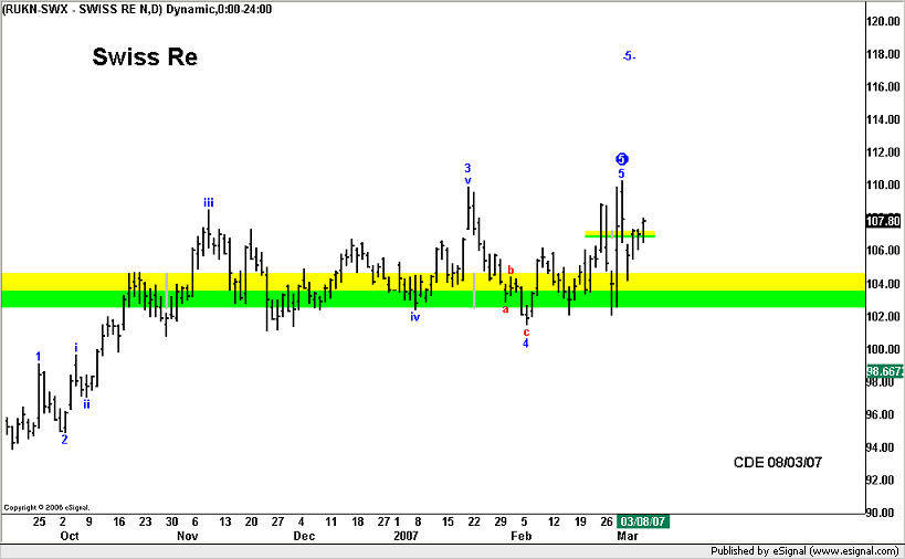 Swiss Re settore Assicurativo quotato a ZurigoAcquistata 107.40 Stop < 106.10