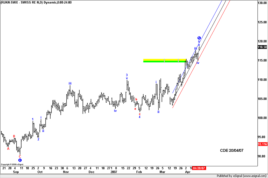 Swisse Re settore assicurativo quotato a ZurigoAcquistata mezza posizione, 5% del portafoglio a 115.00 Stop < 114.90 daily close