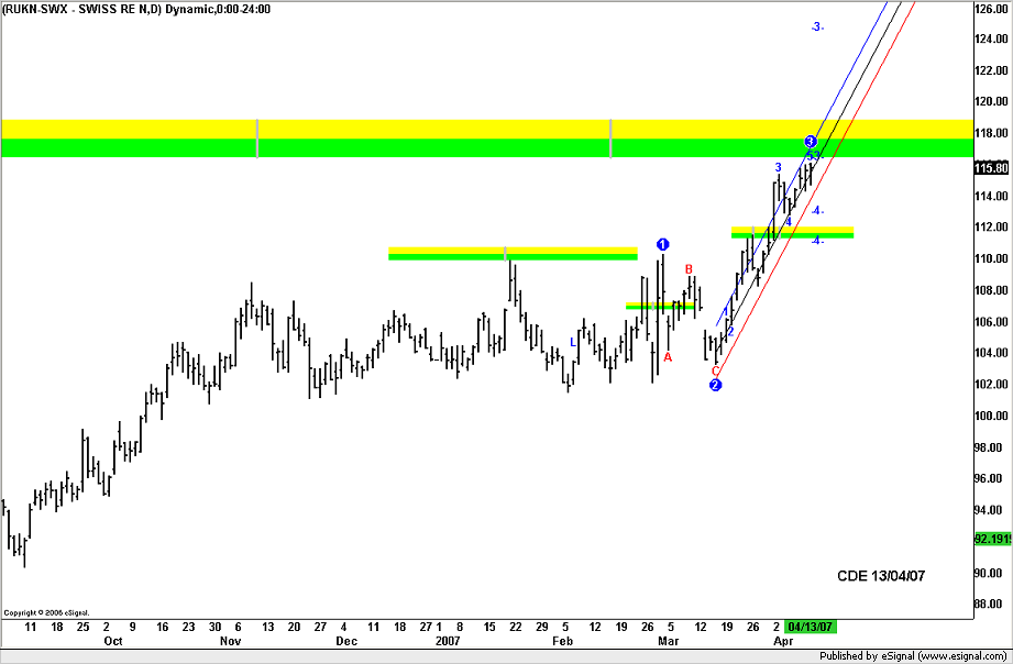 Swisse Re settore assicurativo quotato a ZurigoAcquistata mezza posizione, 5% del portafoglio a 115.00 Stop < 112