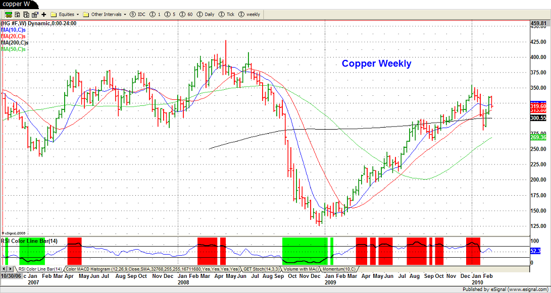 Ad inizio 2010, il Rame ha iniziato una prolungata correzione in concomitanza con lo storno dei mercati azionari, ma tre settimane fa, pare aver ripreso il suo cammino rialzista, seppur con molte incognite ancora.