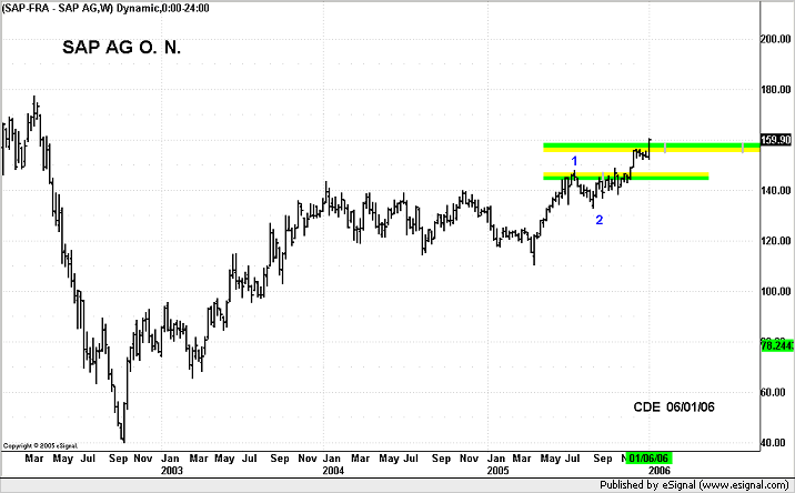 SAP AGON Settore TecnologicoGrafico Weekly In rottura della MOB il titolo dovrebbe avera un'evoluzione rialzista di medio periodo piuttosto importante vista la fase di accumulazione. Il conteggio propone onda tre in formazione, primo target 170/75 a seguire 195/200. Buy > 160.50 Stop < 152