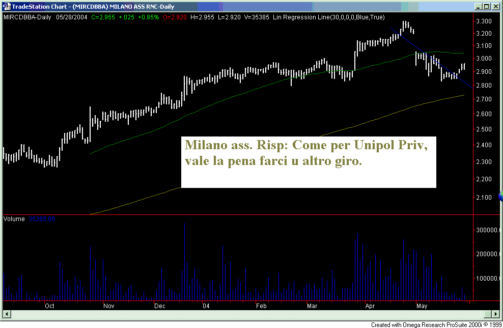 Venerdì avevo inserito Fiat nel titolo dell'articolo ma poi ho preferito non postare il grafico. D'accordo che l'economia e la borsa sono slegate dai sentimenti ma mi pareva poco elegante parlare in ottica speculativa di un titolo appena colpito da un grave lutto. Ad ogni modo la situazione sembra volgere al bello sia dal punto di vista tecnico che aziendale.