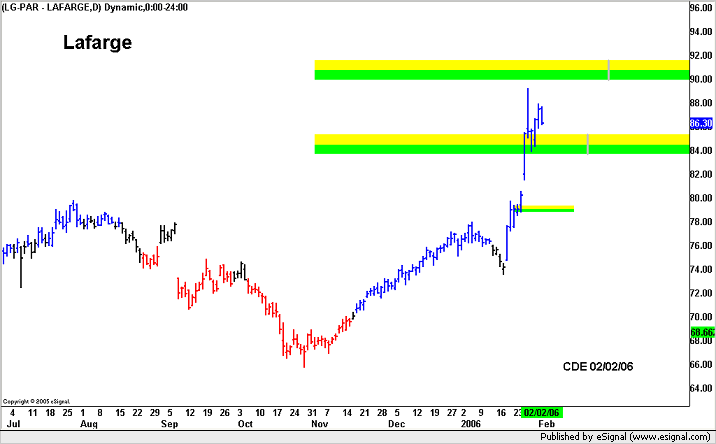 Lafarge Settore Costruzioni quotato a ParigiSiamo entrati in acquisto a 81.60 Profit area 90.00 Stop < 83.90 daily close
