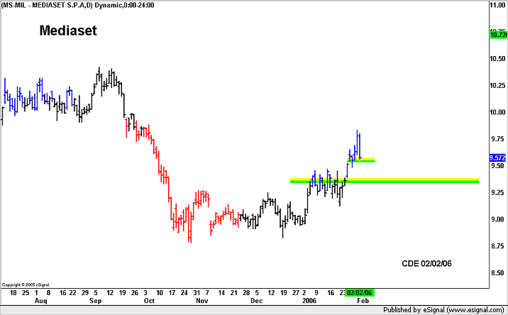 Mediaset Settore MediaSembra l'ennesima falsa rottura, eppure questa volta sembrava quella buona, non abbiamo mai abboccato alle finte partenze di Mediaset vorrà dire che ci aggiungeremo alla lista dei beffati.Siamo long da 9.665 Stop in chiusura daily < 9.47