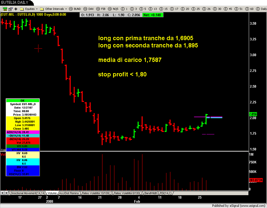 Time-Out: Eutelia booommm, ma io provo a star dentro alzando lo stop in profit...