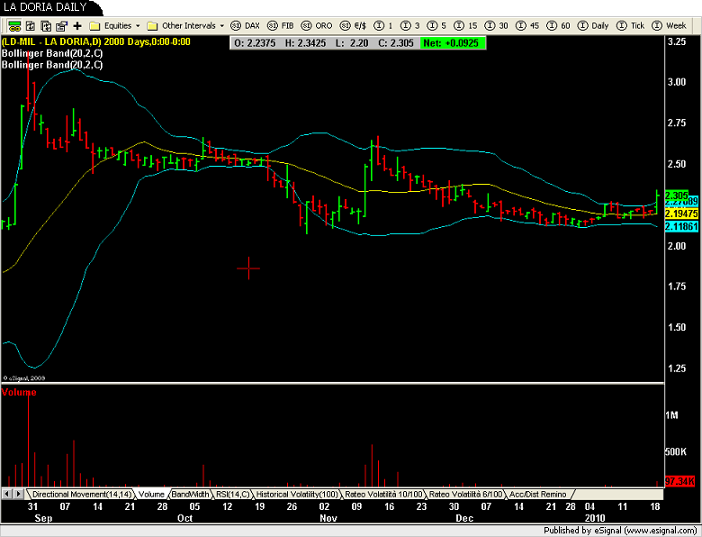 In asta di chiusura sono entrato long su La Doria a 2,305 stop-loss una chiusura daily < 2,1