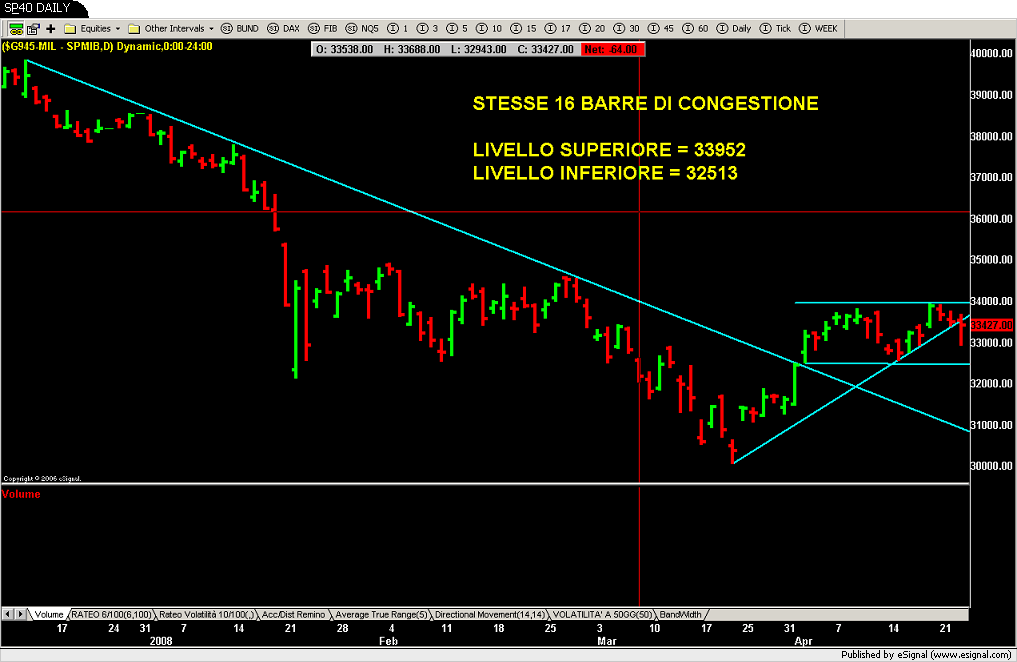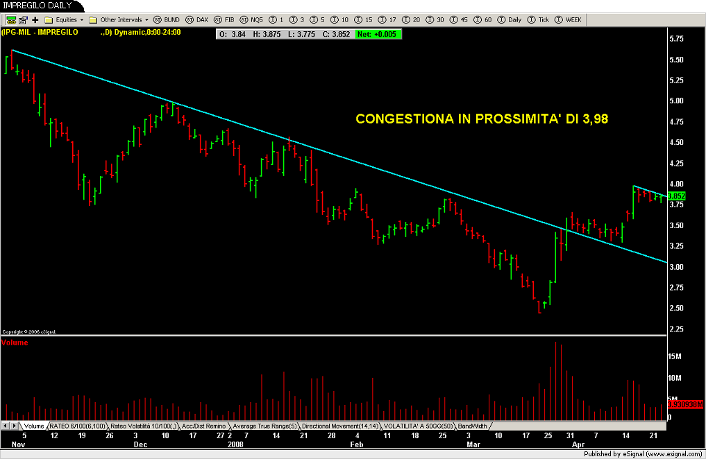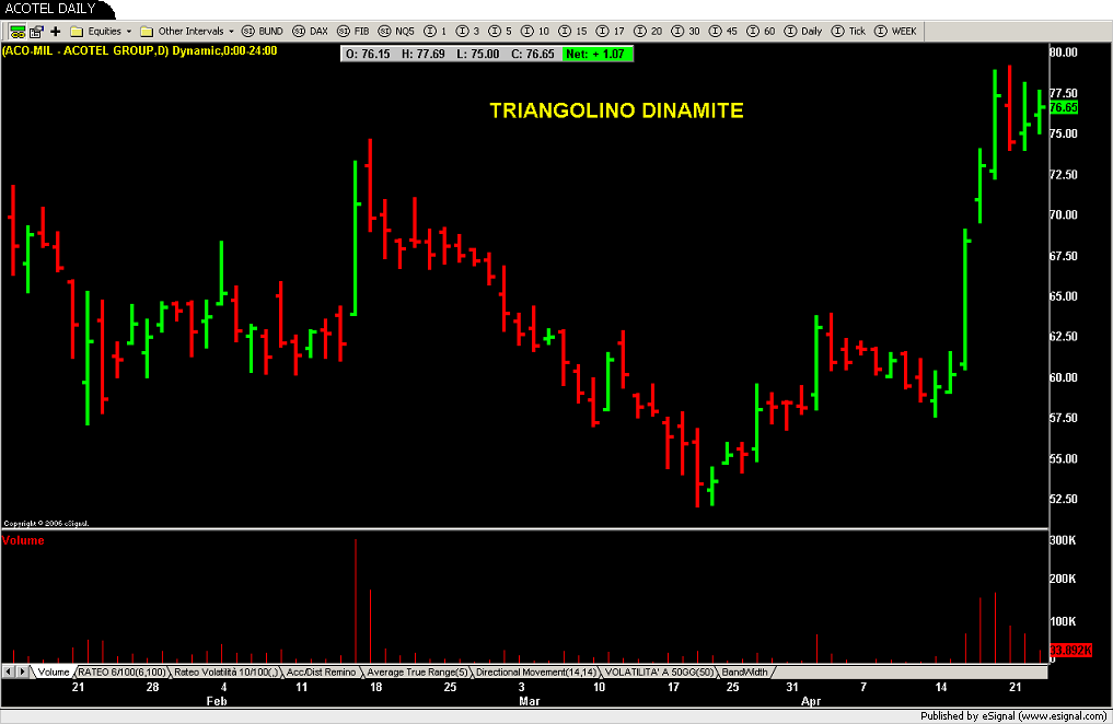 Eccovi i grafici di 5 titoli, oltre a quelli di Mibtel e S&P 40, da seguire attentamente nella giornata di oggi. Personalmente credo li lavorerò intraday poiché ho già molti (troppi?) titoli su cui son dentro sul daily (Banco di Sardegna, Ergo Previdenza, Milano Assicurazioni Risparmio, Isagro, Exprivia). Io, pertanto cercherò su questi titoli un ingresso intraday, salvo poi vedere come si comporteranno sia i singoli titoli che S&P e Mibtel che qualora chiudessero rispettivamente sopra 34000 e 25750 fornirebbero un discreto segnale di forza.