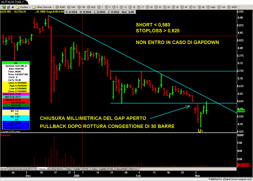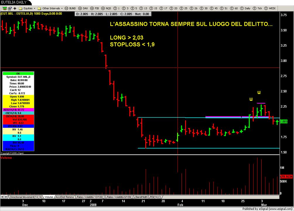 Time-Out: oggi metterò due allarmi e due ordini stop uno al rialzo e uno al ribasso...