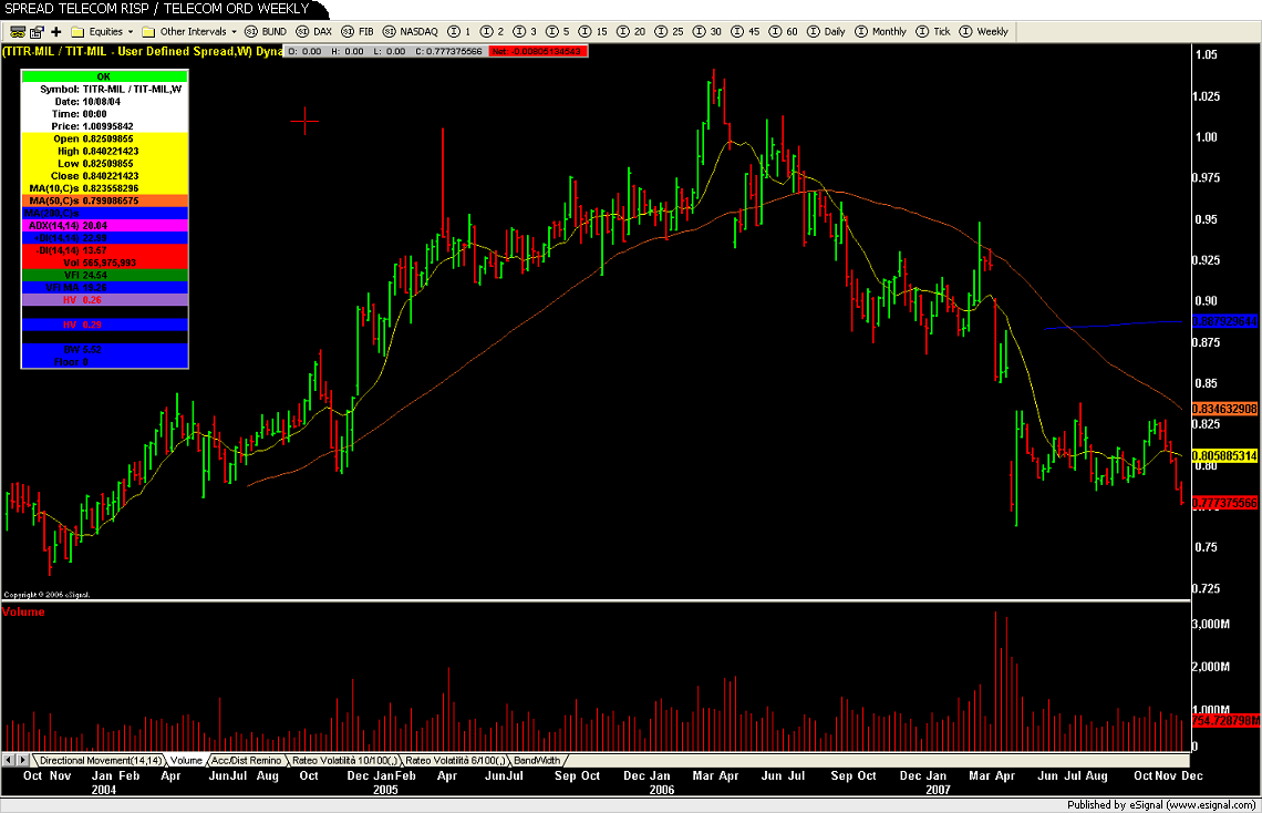 In data 16 aprile 2007 aprii uno spread andando long di 10000 Telecom risparmio a 1,943 e shortando 8050 Telecom ordinarie a 2,415 con un ratio di 0,80455.