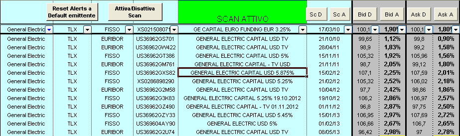 A questo punto dovrei togliere questo bond dal portafoglio high-yield perché GE CAPITAL sia come rating sia come rendimenti su tutte le sue obbligazioni non ha nulla a che vedere con l'high-yield come potete ben vedere dal prospetto qui sotto che contiene le obbligazioni in dollari di GE CAPITAL quotate sull'EuroTLX.