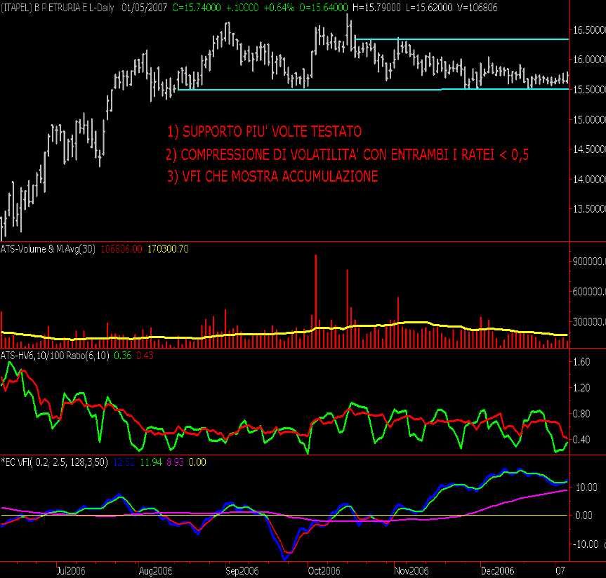 Long Banca Pop. Etruria & Lazio a una media di 15,7315 stoploss una chiusura daily sotto 15,3.