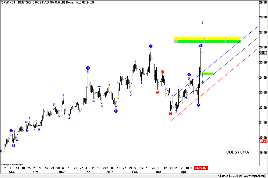 Deutsche Post settore industriale quotato a Francoforte Acquistata mezza posizione, 5% del portafoglio a 24.75 Stop < 24.15 daily close