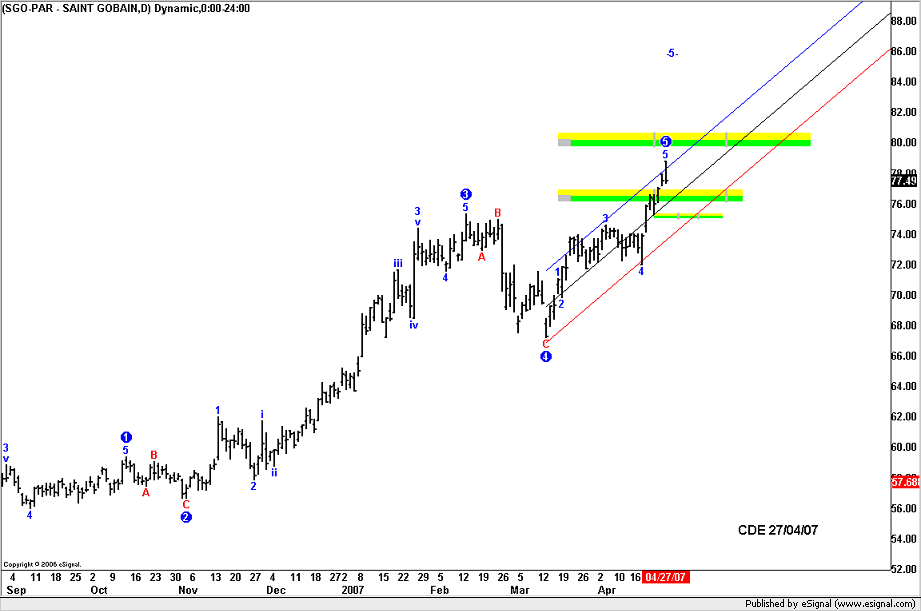 Saint Gobain settore costruzioni quotato a ParigiAcquistata a 74.60 Profit 80.00/50 Stop < 75.30 daily close.