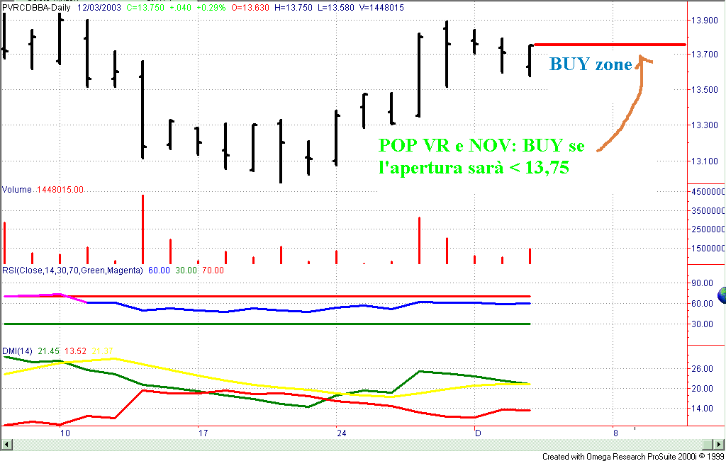Ieri non abbiamo operato col portafoglio daily. Oggi cercheremo di entrare long su Pop Vr e Nov ed Alleanza.