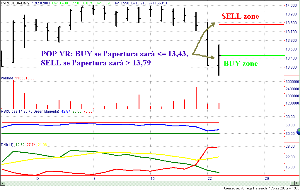 Pop Vr: Buy se l'apertura sarà <= 13,43, SELL se aprirà > 13,79 (poco probabile)