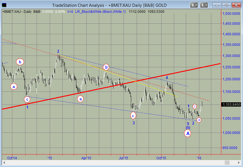 Il Dollar Index rimane in un onda intermedia (5) che è iniziata dal minimo di 92,62 il 24 agosto. Cinque onde Minor completeranno la struttura di onda (5). Naturalmente questa interpretazione resta valida a condizione che il minimo di onda 4 del 15 dicembre non venga violata al ribasso. LE aspettative quindi restano per un imminente rally del dollaro. L'onda cinque dovrebbe terminare poco sopra al massimo di onda 3. Inoltre segnalo che il DSI ora sta raggiungendo degli estremi di ottimismo che suggeriscono che il rally del dollaro stia entrando nella sua fase terminale.