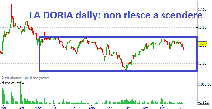 LA DORIA: anche questo un titolo che sembra non riuscire a scendere. Mi piacerebbe però vedere più volumi, è chiaro che se riparte lo ricompriamo.