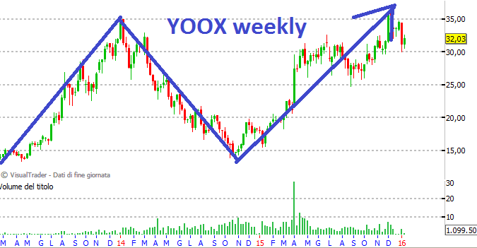 YOOX: abbiamo fatto finora qualche bel giro, sempre uscendo a target e poi a pareggio. Però il titolo è in accumulazione perché non riesce a scendere. Non escludiamo di ricomprarlo.
