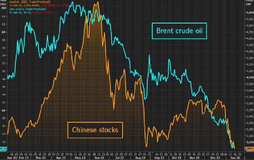 Oramai la maggior parte degli analisti, con Goldman Sachs fra i primi, vede un bottom del petrolio intorno ai 20$. Il target è di quelli impegnativi poichè, se davvero così sarà, vorrà dire che dobbiamo ancora attenderci una tragedia sui mercati equity. Dall'inizio dell'anno la correlazione con molti mercati azionari è impressionante in primis con la Cina: petrolio giù e Chinese Stocks giù e a seguire risk off in tutto il mondo.