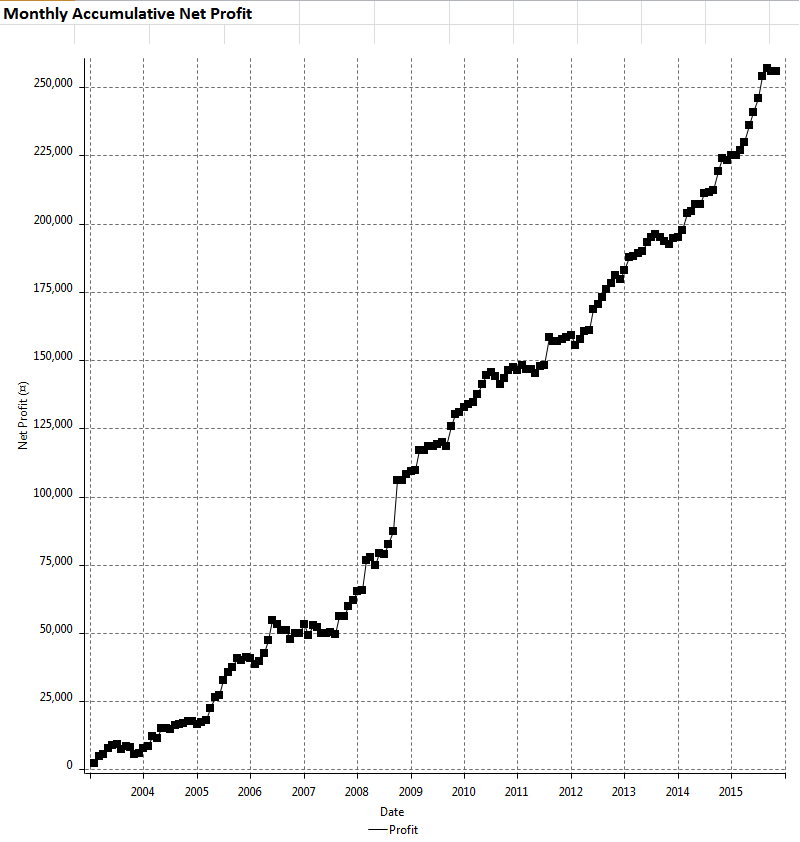 Il rischio totale del portafoglio viene controllato attraverso l’adozione di rigidi criteri di uscita dalla posizione che prevedono livelli di stop loss, take profit e uscite temporali.