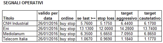 Quattro segnali operativi validi per domani: