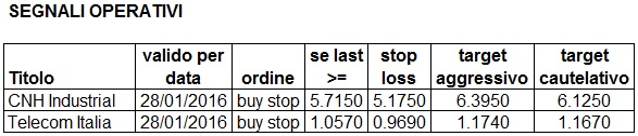 Ancora validi i segnali su CNH e Telecom Italia, con valori ancora una volta lievemente modificati: