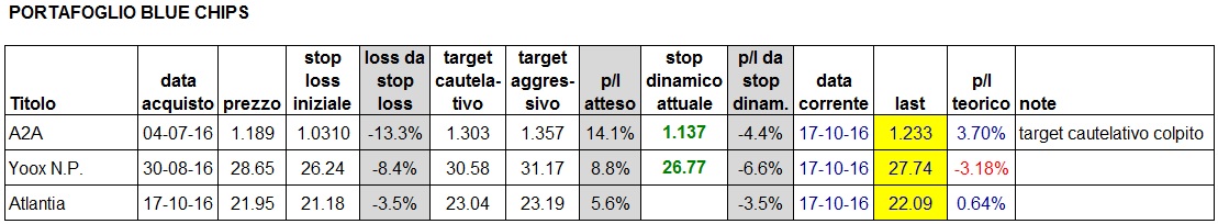 È scattato il segnale di acquisto su Atlantia, che in chiusura ha messo a segno un piccolo profitto. Vediamo se trova la forza di partire.