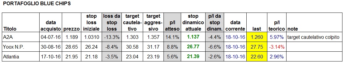 Portafoglio aggiornato al close di oggi: