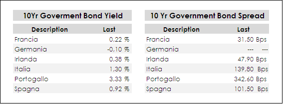 Ovviamente, anche sul fronte degli spread e dei rendimenti dei benchmark governativi non poteva andare diversamente, anche se in questo caso c’è meno uniformità e, sul lato spread notiamo per alcuni Paesi un allargamento degli spread vs Bund, dovuto in buona parte al fatto che la Germania torna a pagare un tasso negativo per i suoi decennali.