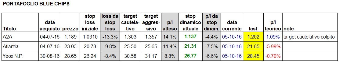 Recupera qualcosa Yoox, niente di buono su A2A e Atlantia. Portafoglio aggiornato al close di oggi: