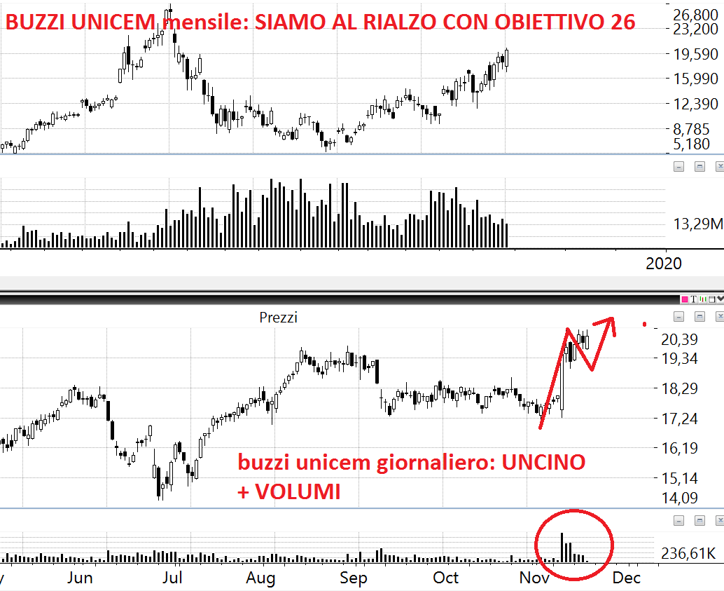 BUZZI UNICEM: strepitosa l’accumulazione di volumi e l’uncino, davvero invoca il buy. Il problema è che sul settimanale abbiamo un tremendo Sequential ribassista e comprare ora significa correre incontro a un bus lanciato a 100 all’ora. Poi si sa che il Sequential si prende anche a rovescio ma questo ce lo facciamo dire dal mercato. Pronti eventualmente ad entrare alla baionetta leggi mercato.