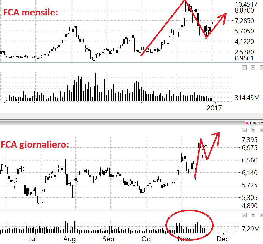 FCA: davvero gustoso l’uncino in corso, tanto più che è un titolo trend following per natura.
