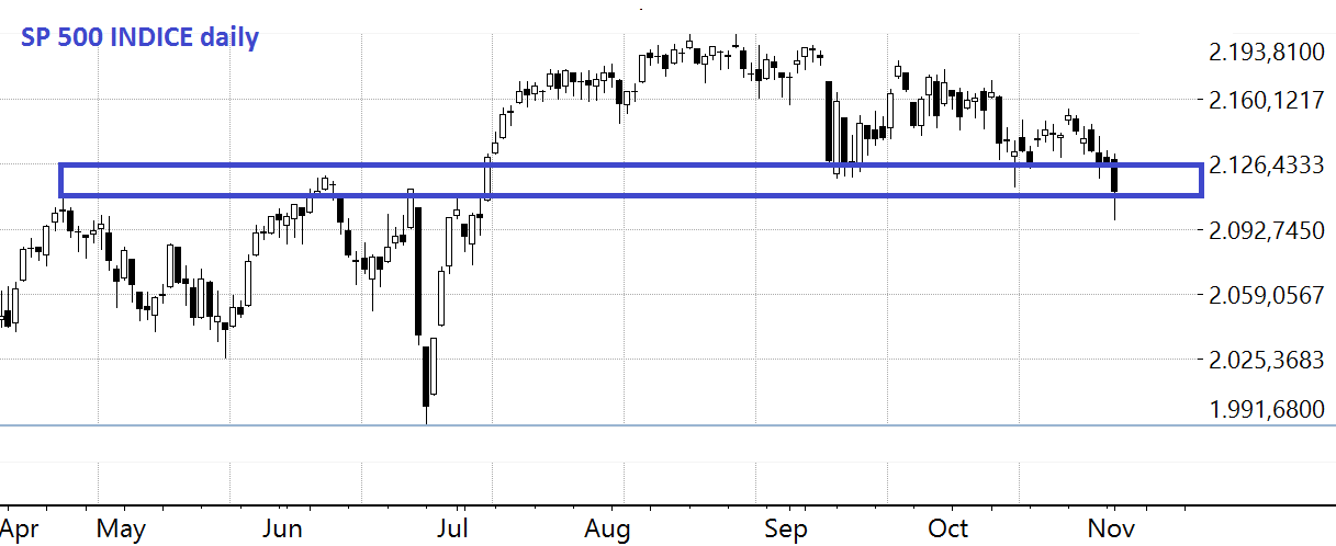 Una osservazione tecnica prima dell’apertura di Wall Street: la barra di ieri è stata di falso breakout / trappola per orsi con pulitura di stop loss catastrofici. Notate sul grafico che posto qui di seguito come i prezzi si siano appogiati su un supporto di medio periodo senza portarsi a chiudere al di sotto. Vediamo la chiusura di oggi.
