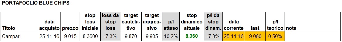 Portafoglio aggiornato alla chiusura di oggi: