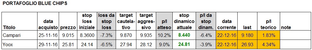 Aggiornamento portafoglio alla chiusura di oggi: